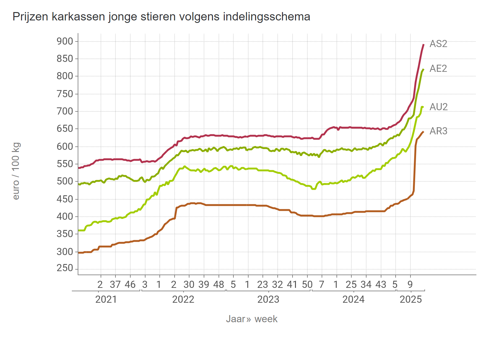 Figuur 10. Grafiek karkasprijzen jonge stieren (week 49)