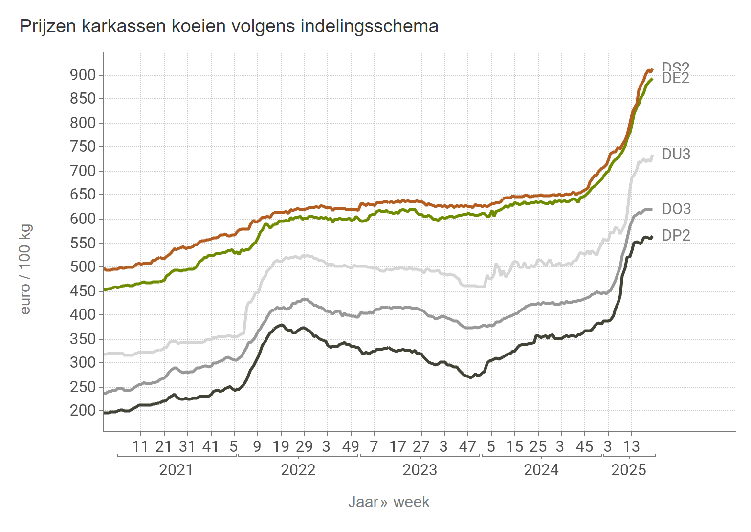 Figuur 11. Grafiek karkasprijzen koeien (week 49)