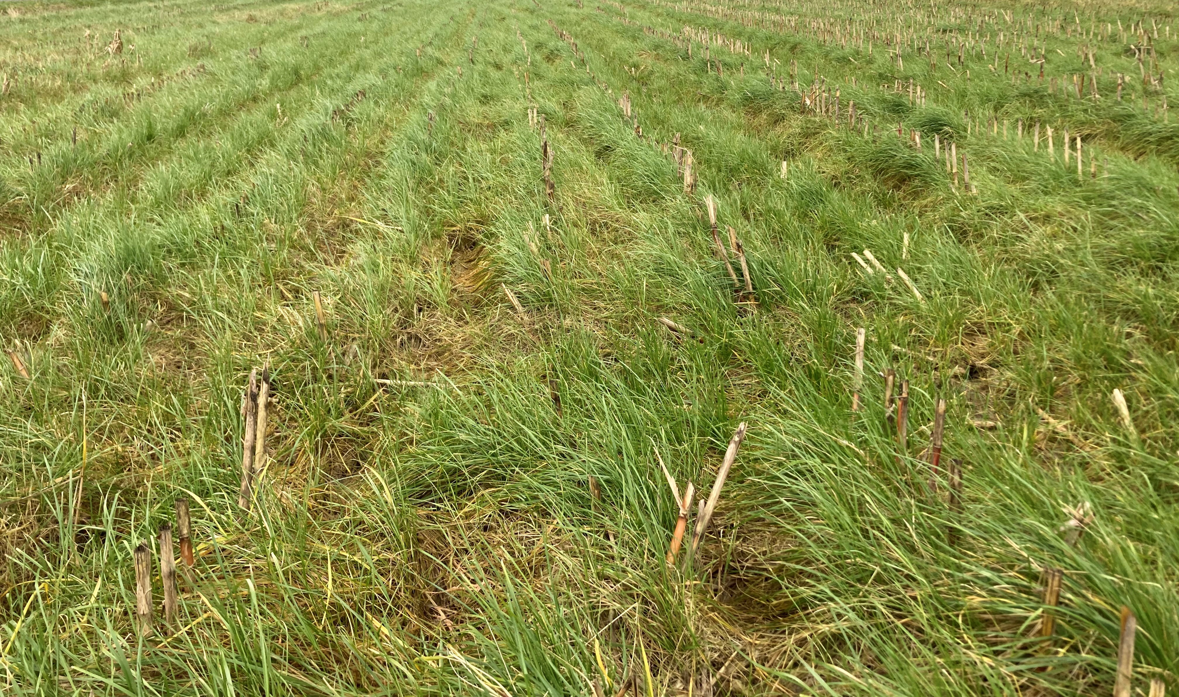 Foto 3 Massaal ontwikkelde rietzwenkgras onderzaai door onvoldoende remmming door herbiciden (januari 2022)